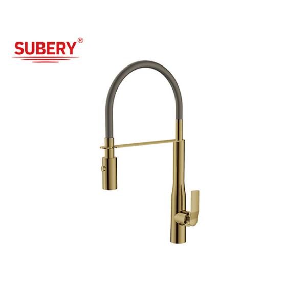 Brushed Golden Brass Kitchen Sink Faucets Single Lever Images |